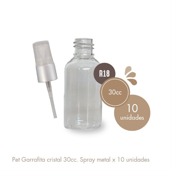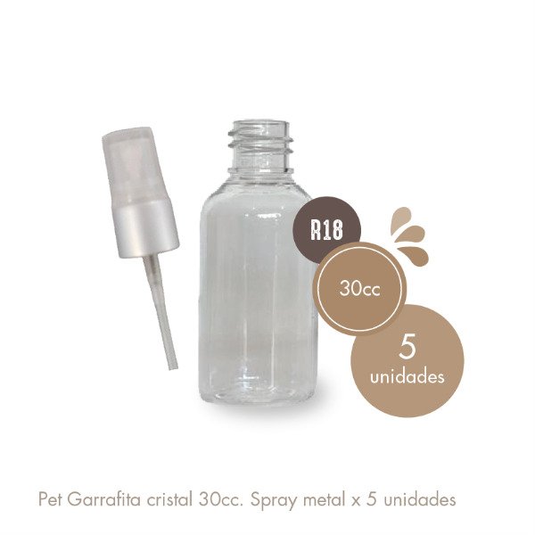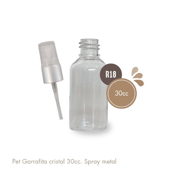 Pet Garrafita 30cc Cristal Válvula Spray Metalizada