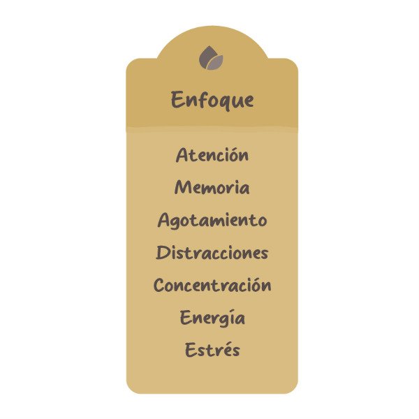 Trabajaba sobre el Agotamiento mental,desgaste y rendimiento a nivel cerebral. Aumenta la atención, agudiza el enfoque y la concentración.Activación de energía, ayuda en la pérdida de memoria y distracción (ideal para el TRASTORNO DE DÉFICIT DE ATENCIÓN, ALZHEIMER. Etc)